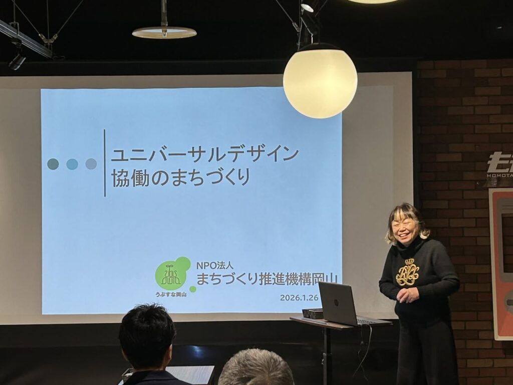 約20年間に渡り、岡山にユニバーサルデザイン(UD)を普及されてきた第一人者であり、人気者でファンが多い徳田様から具体的で興味深く面白いお話をお伺いしました。